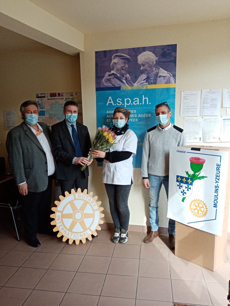 C’est pour saluer leur dévouement tout au long de l’année 2020 que le Rotary Club Moulins-Yzeure a décidé cette année, à l’occasion de la journée internationale de la femme, de mettre à l’honneur les personnels du milieu hospitalier, des établissements pour personnes âgées dépendantes (Ehpad), des associations d’aide à la personnes et des magasins d’alimentation.