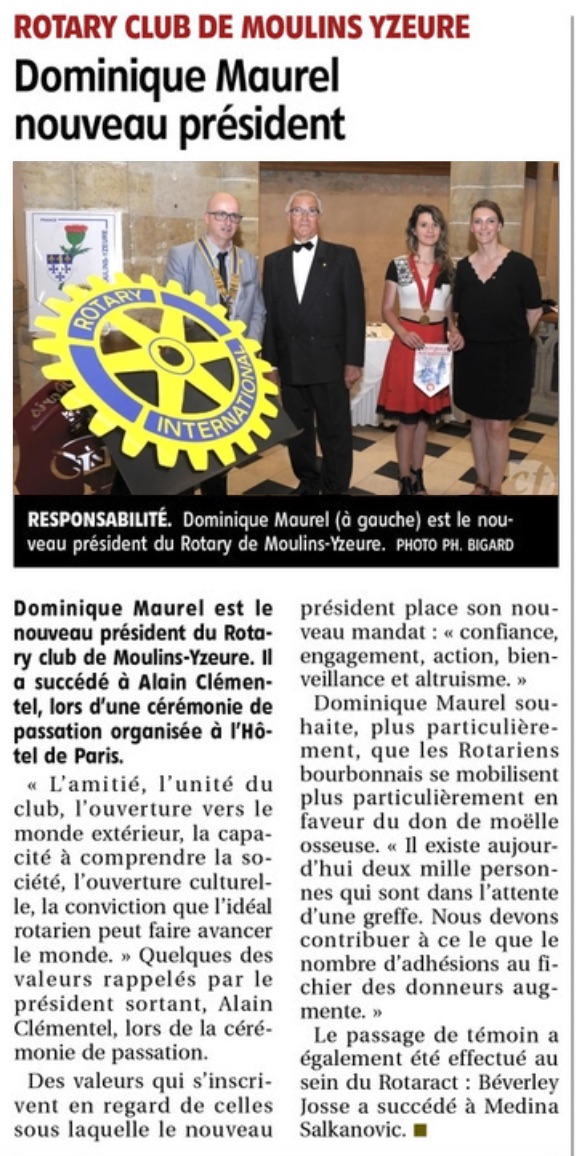 Bienvenue à Lionel au Rotary Club de Moulins-Yzeure !!!