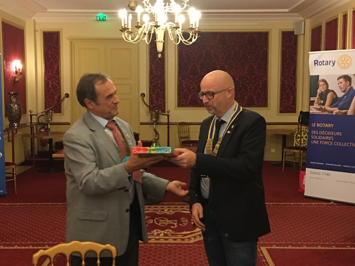 Le 11 septembre 2016, à l’occasion d’un Week-End dans le cantal, les rotariens de Moulins-Yzeure ont rencontrés leurs amis aurillacois. Les deux présidents ont échangés les fanions de leurs clubs respectifs.