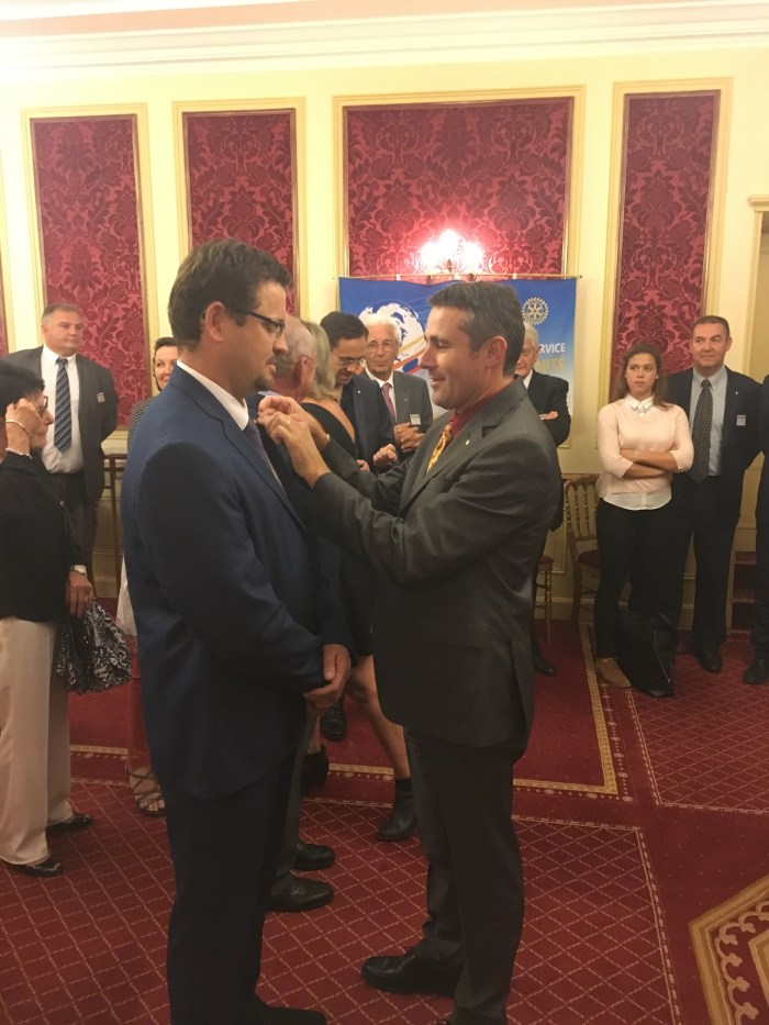 David Lallemand reçoit l’insigne du rotary de Franck Servajean