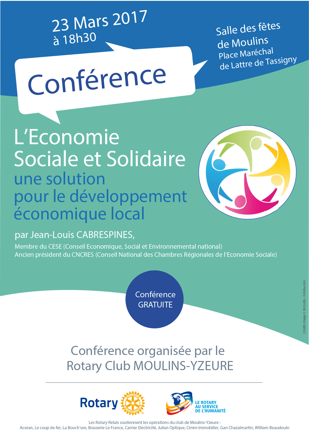 Le Rotary Club de Moulins-yzeure vous invite à assister à la conférence : l’Economie Sociale et Solidaire, une solution pour le développement économique locale.