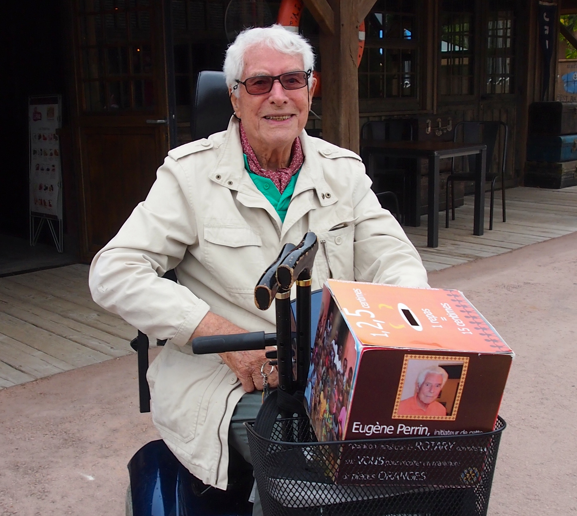 Le club souhaite un très bon anniversaire à son doyen Eugène PERRIN. Eugène est un jeune homme de 96 ans qui affiche toujours un optimisme et une joie de vivre, exemplaires. Son engagement rotarien est remarquable. Nul doute que la visite le 15 octobre prochain de Jacques BERLY, dont la cause à Madagascar lui tient particulièrement à coeur, sera pour lui un grand moment d’émotion.